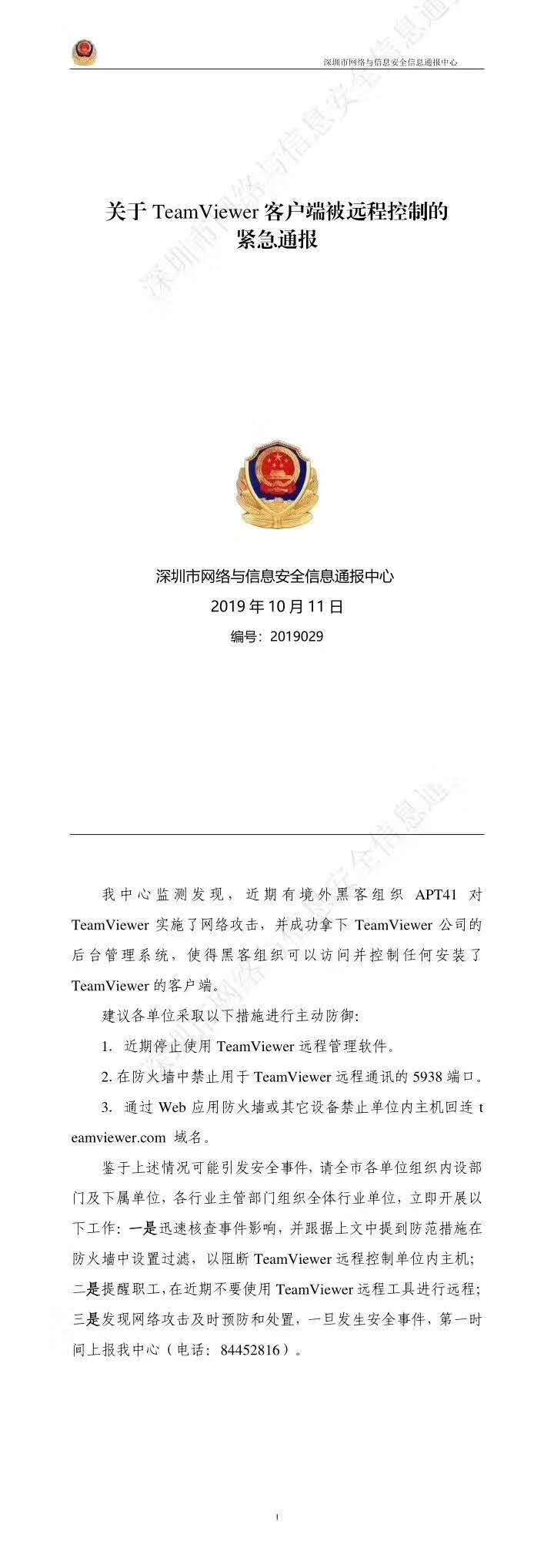 根據(jù)深圳市網(wǎng)絡(luò)與信息安全信息通報(bào)中心檢測(cè)發(fā)現(xiàn),近期有境外黑客組織APT41對(duì)TeamViewer 實(shí)施了網(wǎng)絡(luò)攻擊,并成功拿下TeamViewer 公司的后臺(tái)管理系統(tǒng),使得黑客組織可以訪問(wèn)并控制任何安裝了TeamViewer 的客戶端。